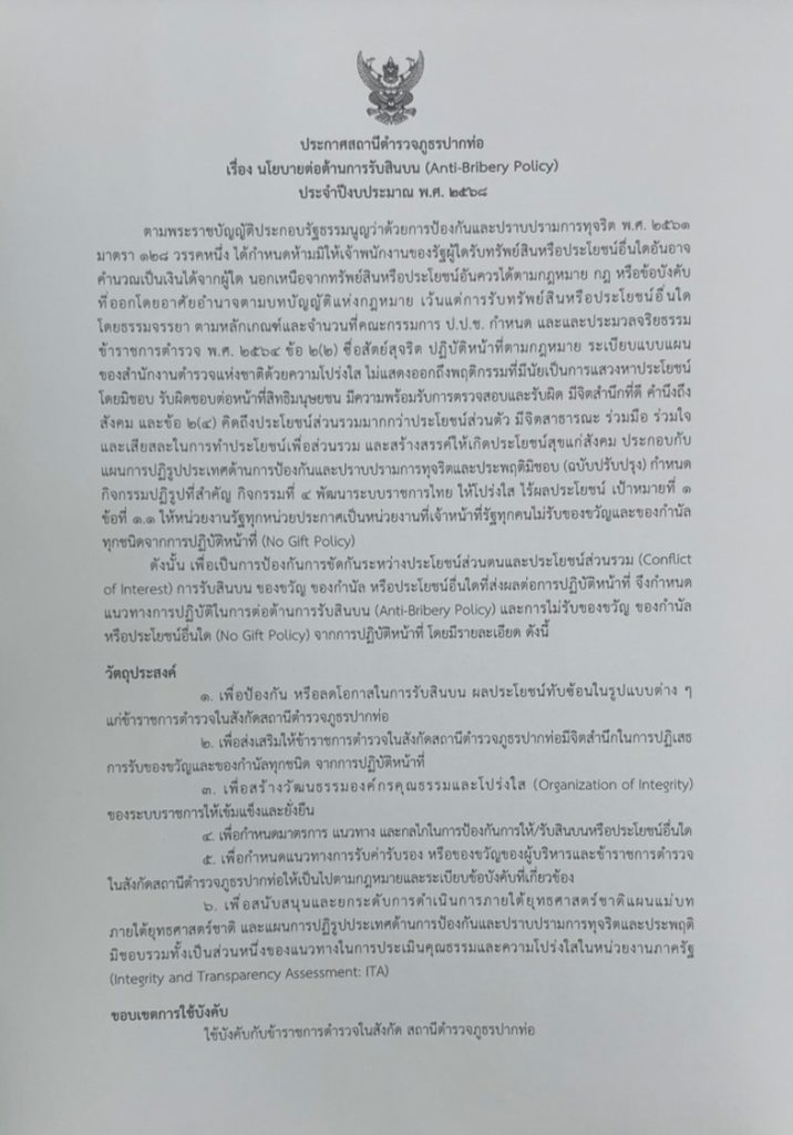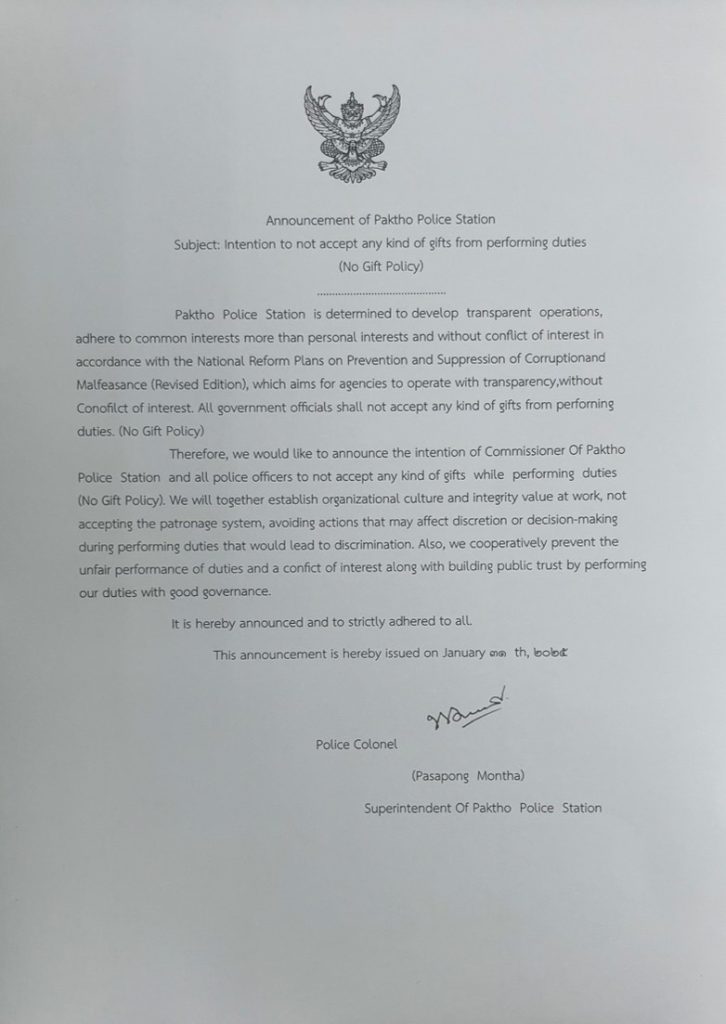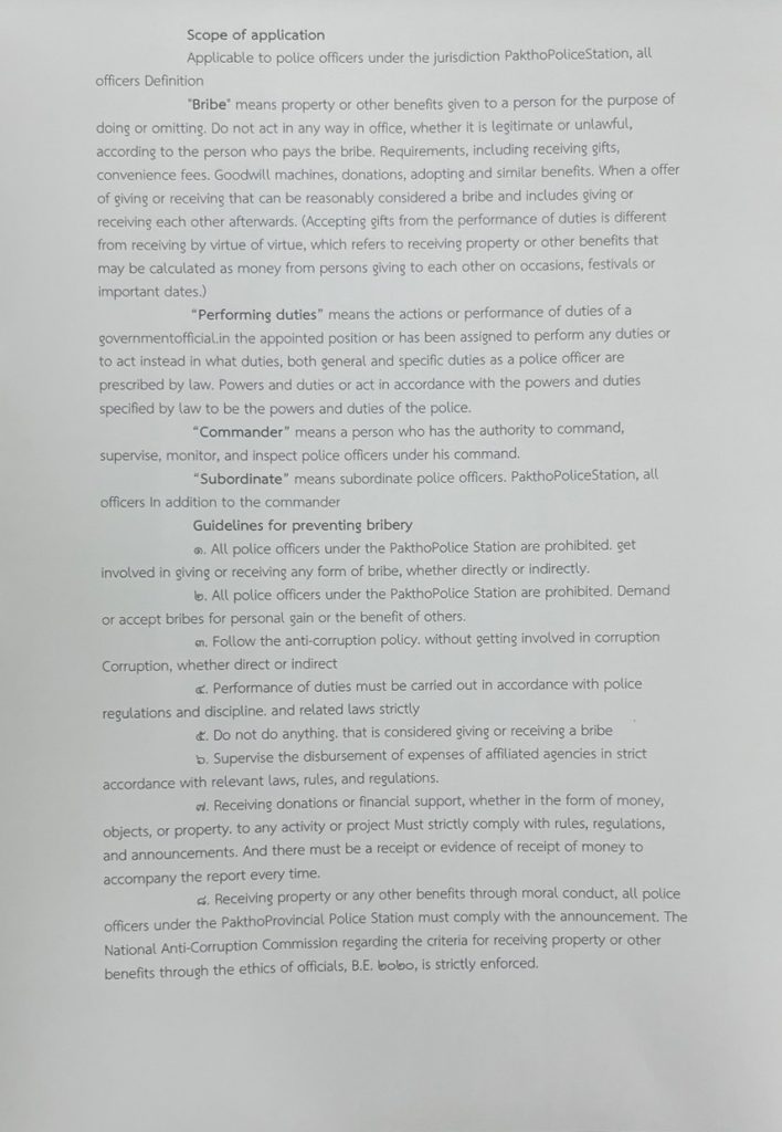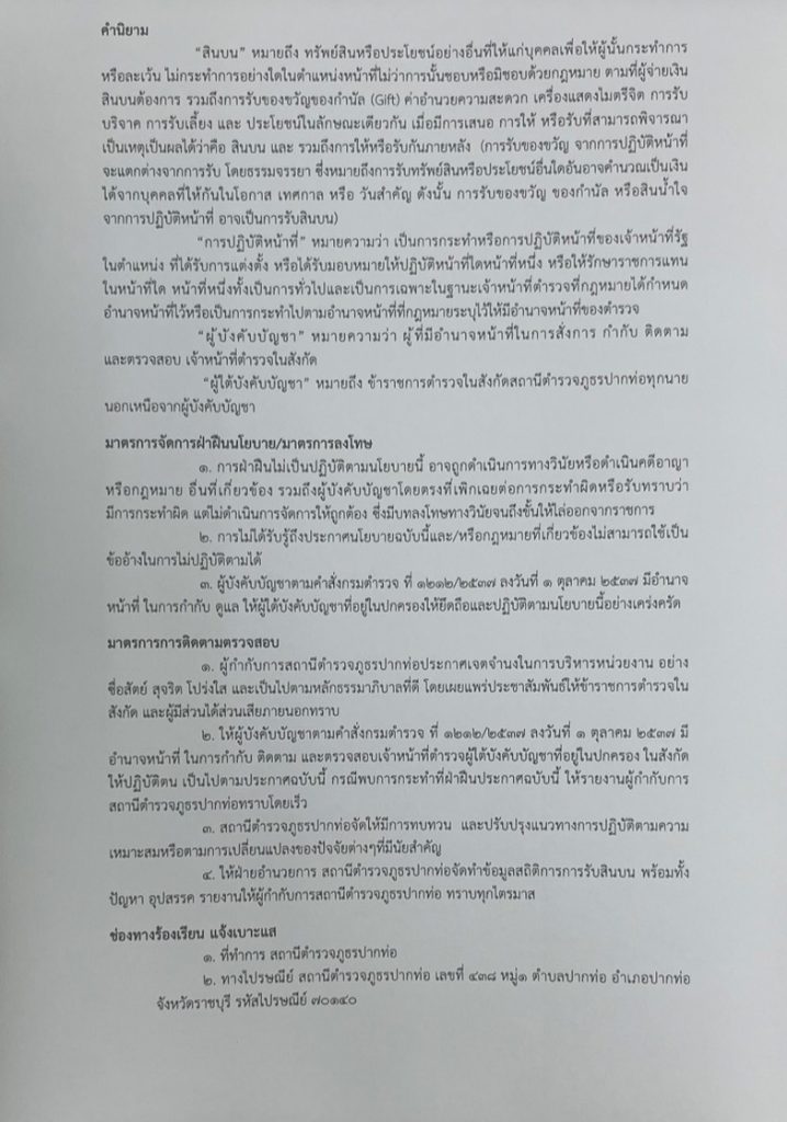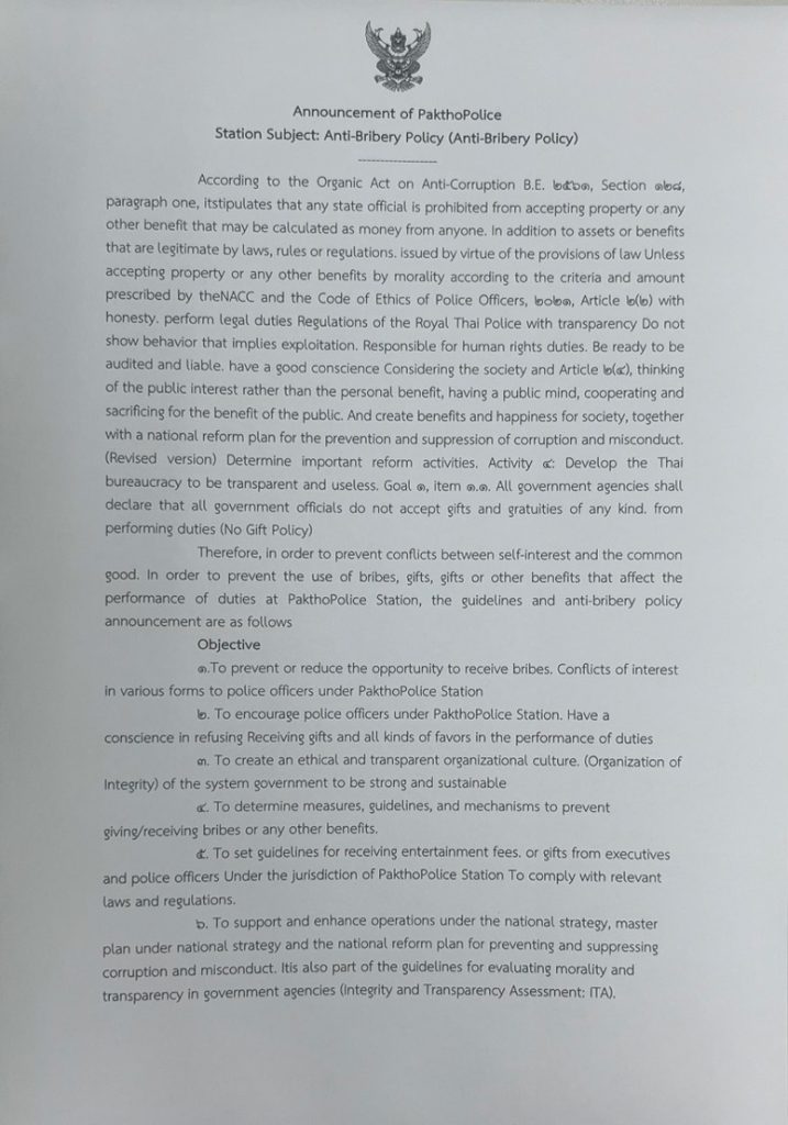 ประกาศนโยบายต่อต้านการรับสินบน (Anti-ฺBribery Policy) ฉบับภาษาไทย